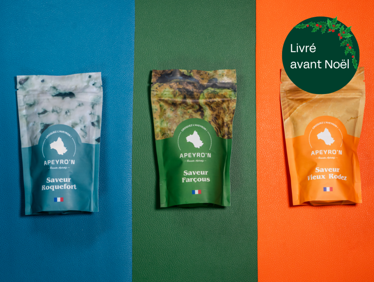 Trois saveurs originales composent notre gamme de biscuits Apeyro'n, inspirées des traditions culinaires de l’Aveyron :