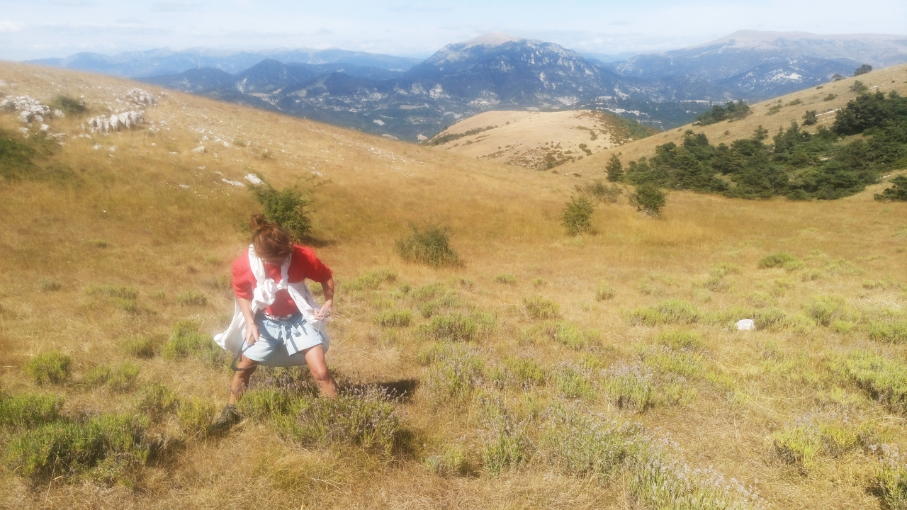 La récolte des cultures et des cueillettes sauvages se feront à la main. (Ci dessus cueillette de lavande sauvage et de thym)
