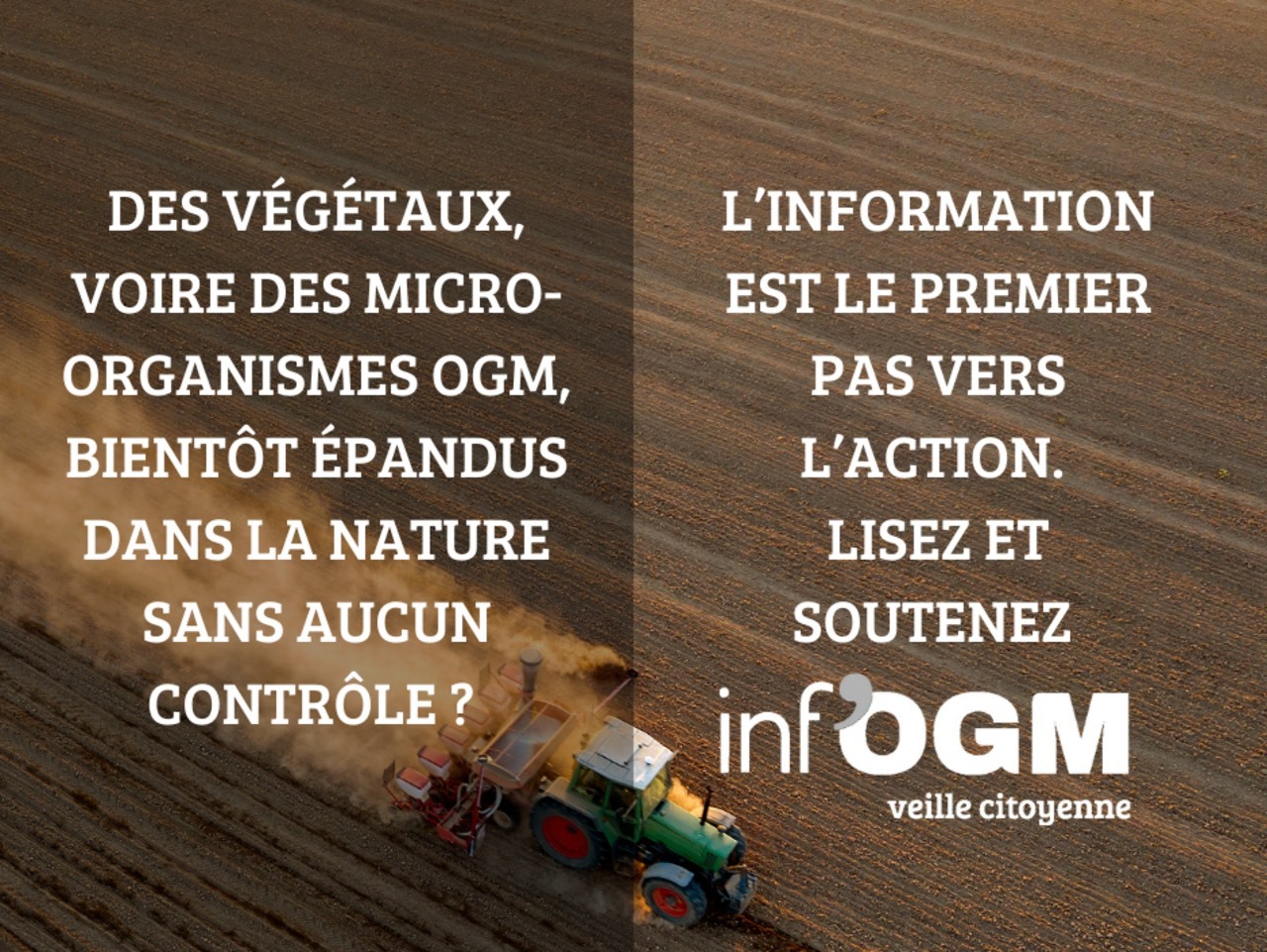 Inf’OGM est la seule association en France et en Europe à diffuser une information fiable et spécialisée pour mettre en balance les promesses des entreprises de biotechnologies et les lacunes scientifiques des institutions nationales, européennes et internationales.