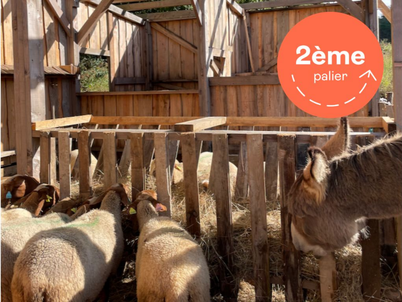Depuis janvier 2024, Jules, un jeune âne de Provence, m'a rejoint pour m'aider au travail des cultures en traction animale. Un troupeau de quinze brebis l'a retrouvé il y a peu afin de l'aider sur l'entretien en écopâturage des terrains et lui tenir compagnie. C'est ainsi qu'une belle bergerie entièrement en bois local a été réalisée en auto construction durant l'hiver 2024.