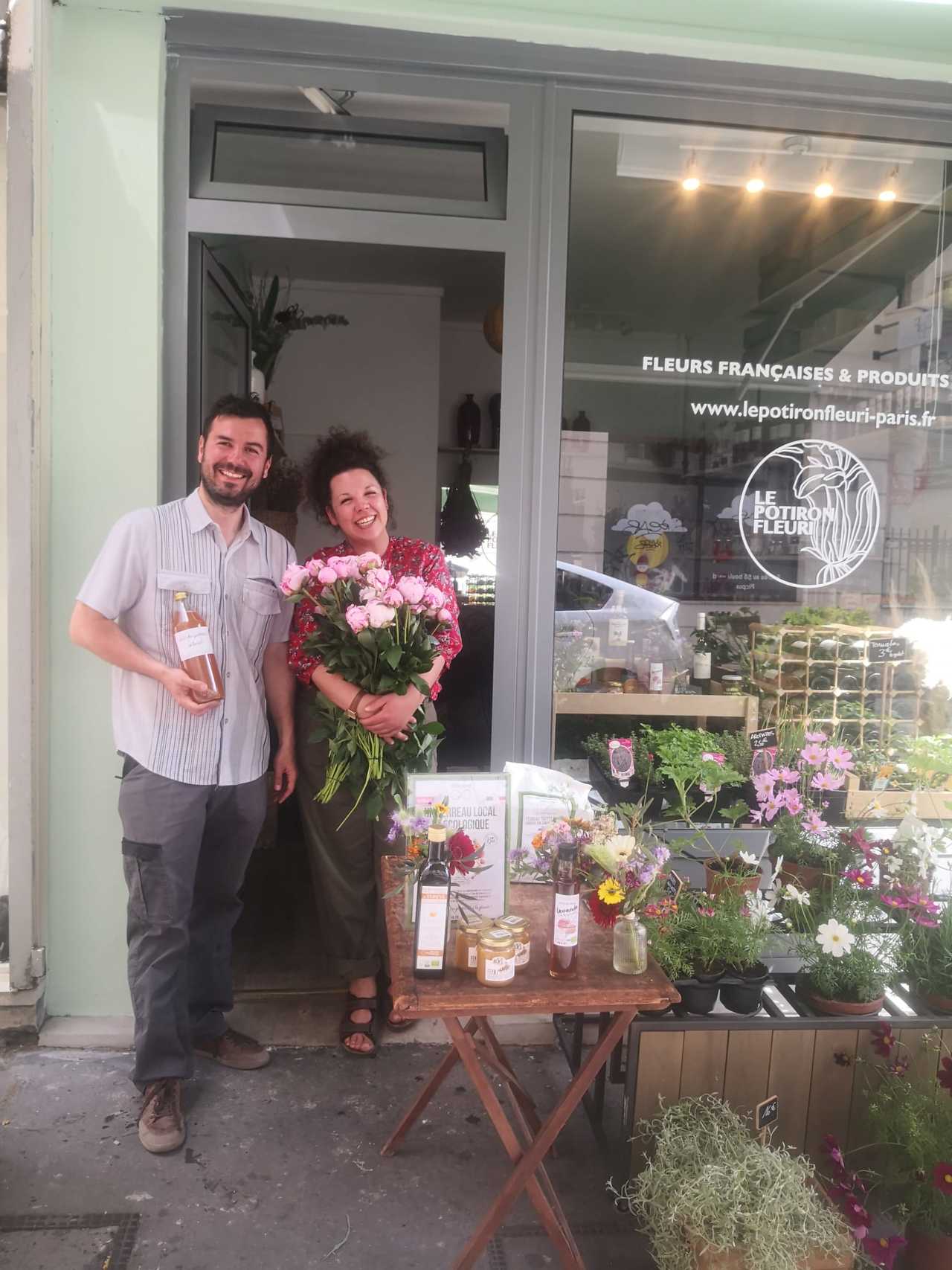 Nous sommes Emmanuelle et Benjamin ! Nous venons d'ouvrir Le Potiron Fleuri, une boutique de fleurs de saison et de produits de la ferme située dans le 12ème arrondissement de Paris.