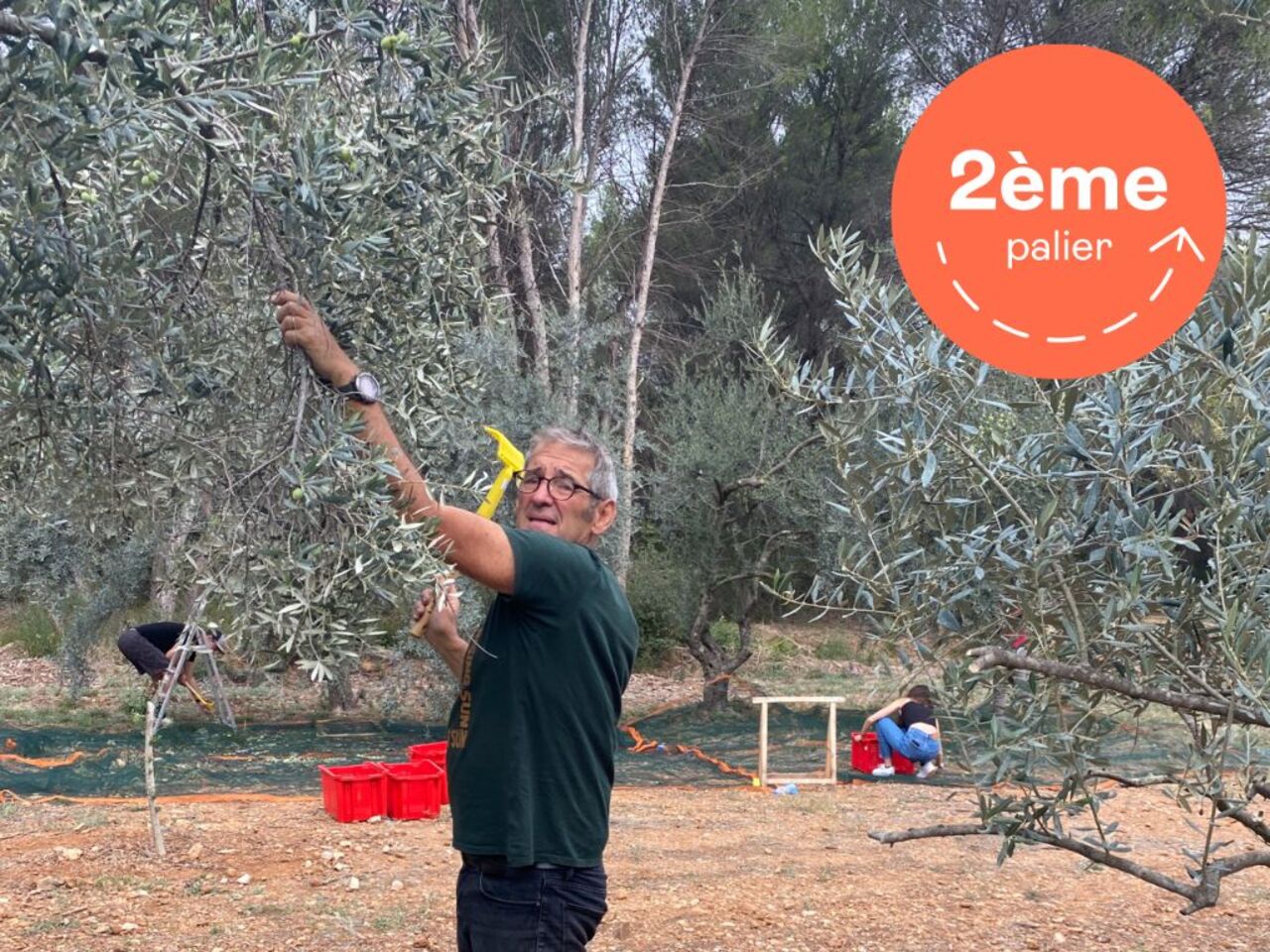 Aujourd'hui j'assume seul la charge de travail que représente l'exploitation des 800 oliviers, ma femme ayant pris en main la communication, le site internet et la commercialisation de l'huile. Pour la récolte, nous avons été aidé par de nombreux bénévoles.