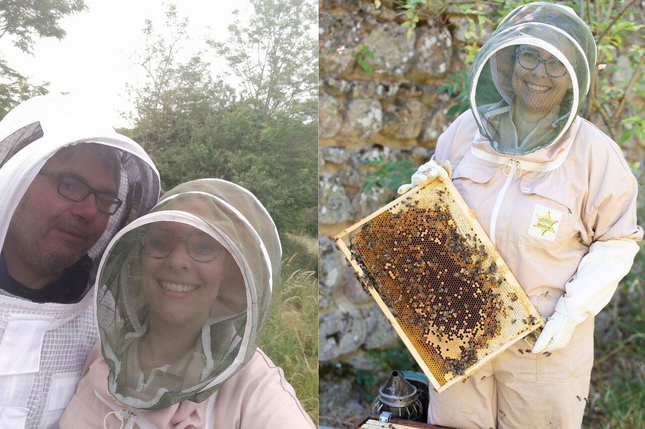 Accompagnée de mon mari Antony, artiste, vétérinaire et toxicologue, nous vous proposons une apiculture un peu différente : nos ruches sont toutes sédentaires, disposées dans plusieurs ruchers des Monts du Lyonnais en zone de production de fruits, d'élevage extensif et de forêts. J'apporte une attention toute particulière à la santé de mes abeilles en semant des fleurs adaptées à leurs besoins. Scientifique avant tout, chaque lot est analysé au laboratoire (Naturalim France Miel) afin de valider son origine florale et de décrire les pollens présents dans la récolte des abeilles. La lutte contre les pathologies des abeilles est également ma priorité, et je suis très impliquée au niveau associatif (co-présidente de la section apicole du GDS).