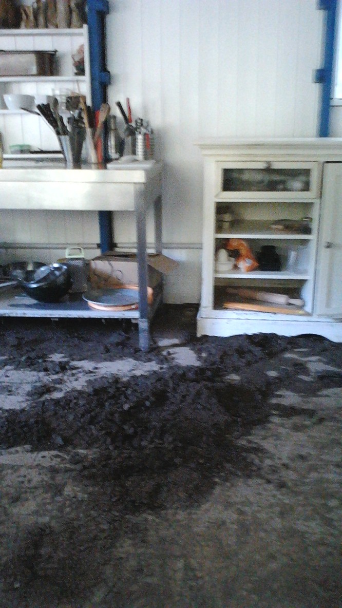 Vue de la cuisine du restaurant après la catastrophe