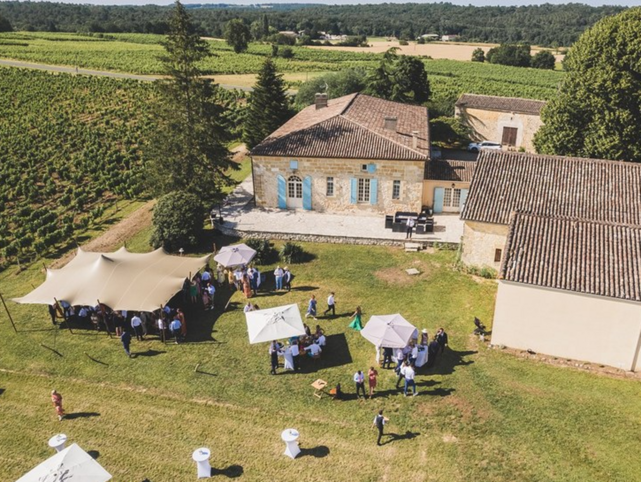 Après une reconversion de la Grande culture à la Viticulture par passion pour le vin, je me suis installé néo vigneron avec Aurélie en 2019 sur cette majestueuse propriété du 18ème siècle de 50 ha d'un seul tenant (ancienne propriété de l'Archevêque d'Angoulême), constituée de vigne, de forêt et d'étangs sise entre Castillon la Bataille et St Emilion, aux portes de la Dordogne.