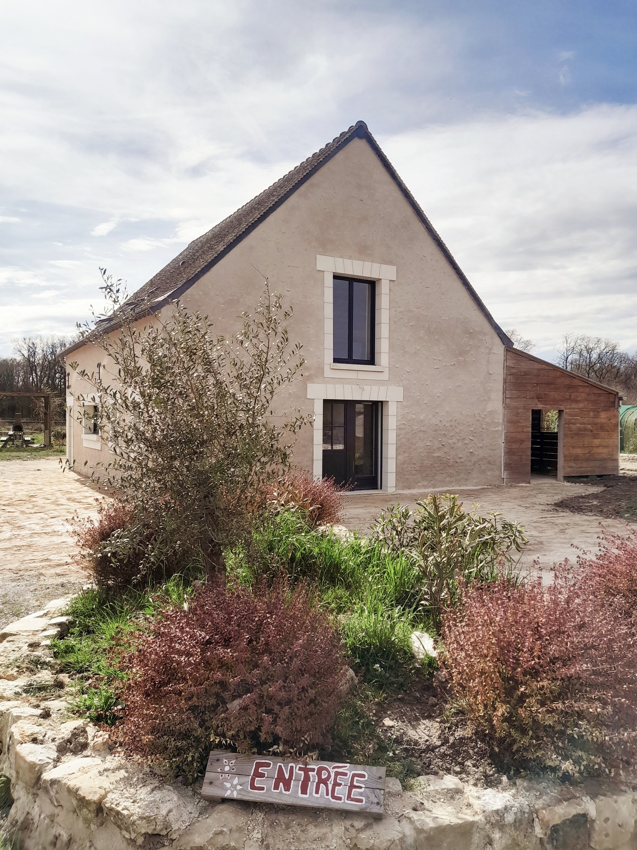 Tout d'abord nous devons finir d'aménager notre gîte 12 places pour lequel nous venons de finir les travaux : il nous reste à aménager l'intérier, installer un accès PMR et finir le jardin autour. Ce gîte est une ancienne étable que nous avons restaurée en plein cœur de notre ferme.