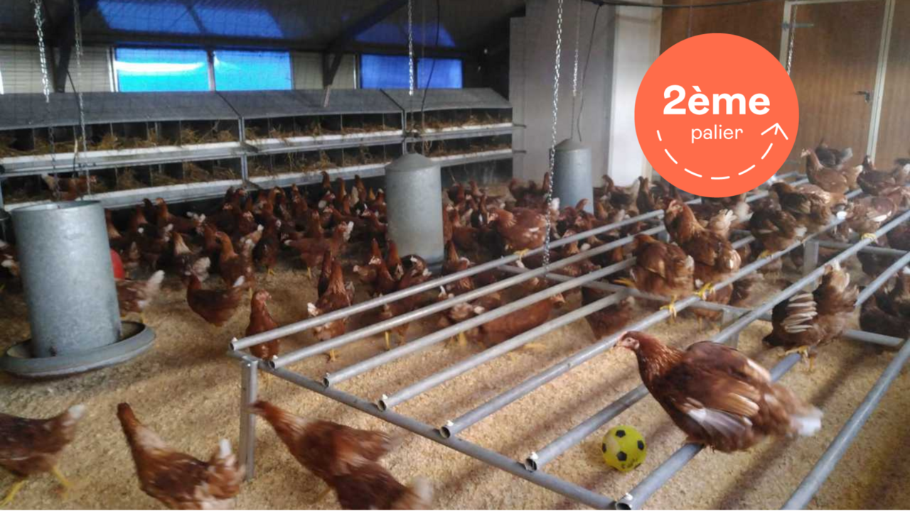 - 1er palier : l'achat de 304 poules pondeuses BIO pour un montant de 4 200€ TTC.